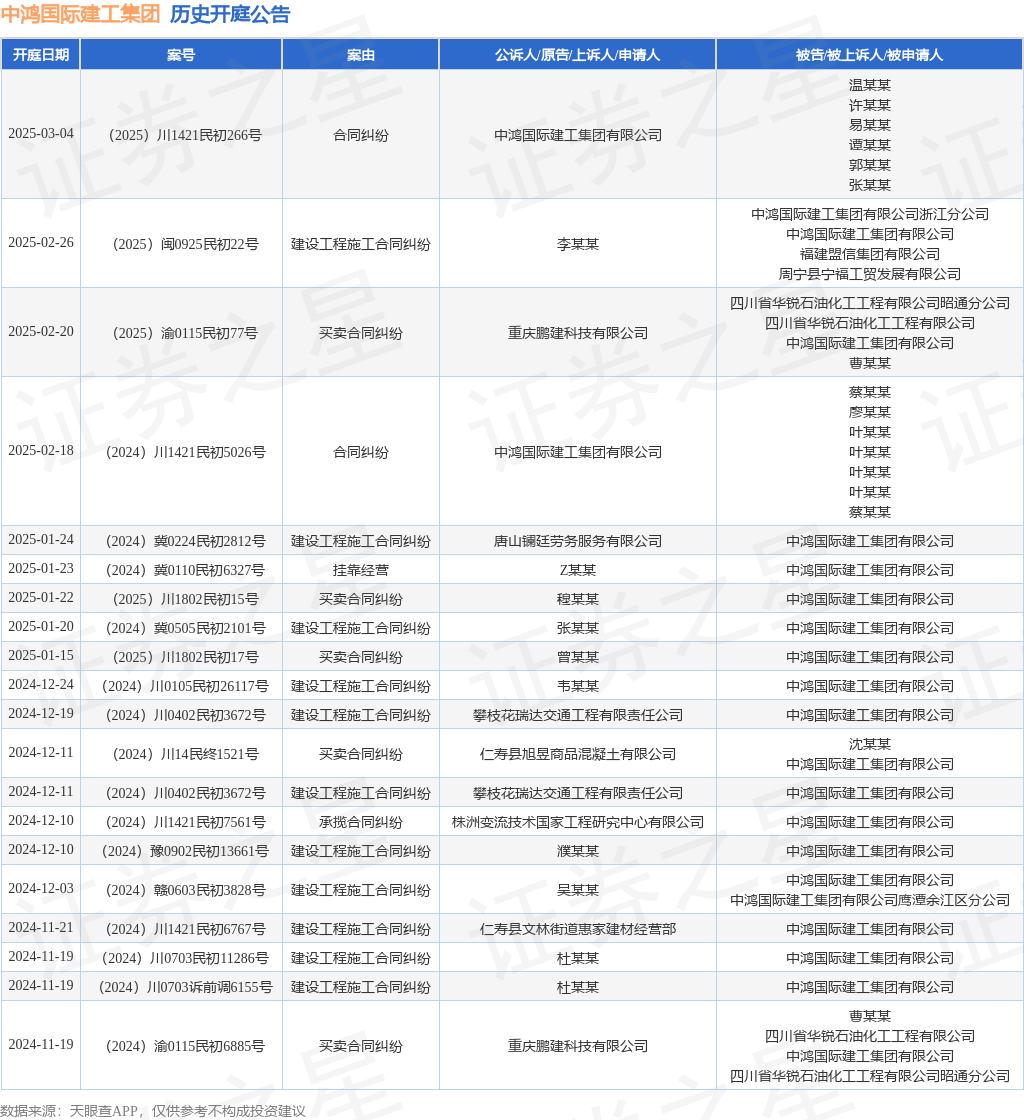 本站消息,根据天眼查APP显示,近日公布了一则中鸿国际建工集团有限公司作为被告/被上诉人的开庭公告,详细内容如下: